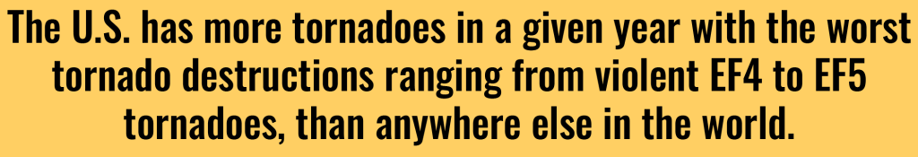 The US has more tornadoes in a given year than anywhere else in the world. Here are some tips for surviving the tornadoes:
